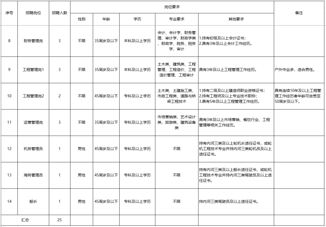為保證崗位競爭性,結(jié)合報名情況,經(jīng)研究決定調(diào)整人防管理崗1、物業(yè)項(xiàng)目經(jīng)理崗、船長以上3個崗位相關(guān)條件,并重新報名,其他事項(xiàng)按原公告不變。相關(guān)內(nèi)容公告如下: